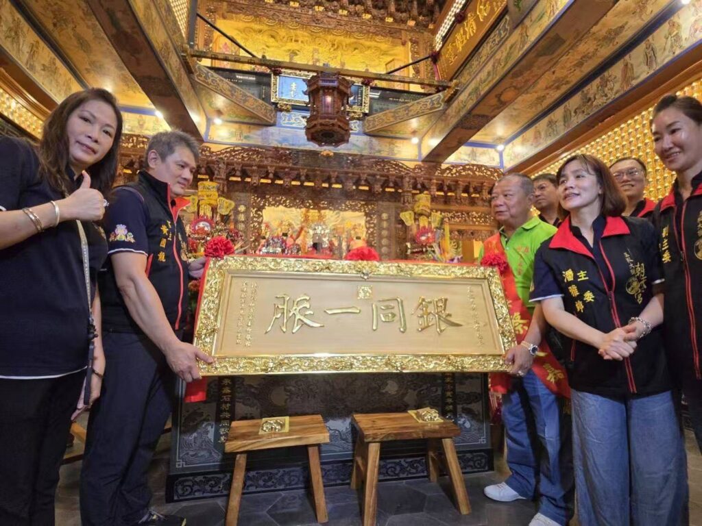 在與巷仔媽交流過後,銀同媽祖繼續開啟環台遶境行程,除了慈后宮之外,26日銀同媽還到了高雄市玉敕大樹朝天宮,並由銀同天后宮榮譽主委蔡文嘉致贈「銀同一脈」牌匾,藉以象徵媽祖信仰的永續傳承與發揚。