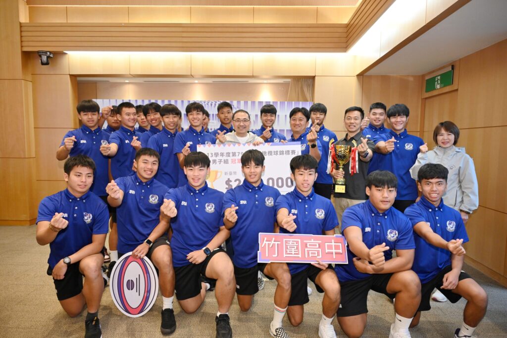 ▲新北竹圍高中拿下第79屆全國橄欖球錦標賽高中男子組冠軍市府頒發20萬元培訓金。(圖/新北市體育局 提供)