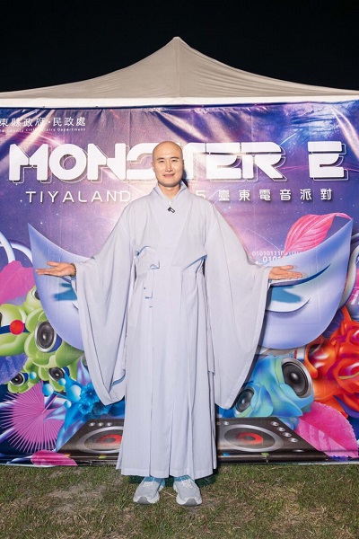 韓國爆紅的電音和尚NewJeansNim日進大師(尹成浩)初訪台東用電音「普渡眾生」,著袈裟戰袍首唱新歌 〈방하착〉要大家「菩揪hands up」!