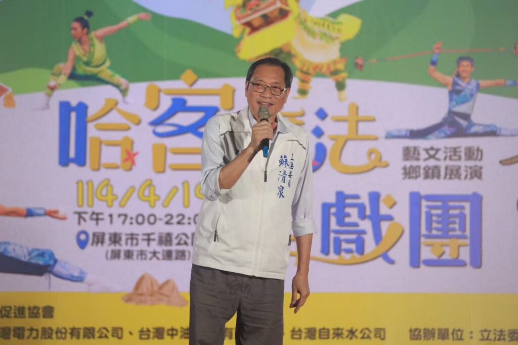 立法委員蘇清泉親臨現場致詞,分享他對屏東綠色交通與基礎建設的規劃。他表示,已爭取於屏南快速道路旁增設單車道,落實綠色運輸與運動休閒設施,「建設不分藍綠,只要對屏東好,我都會全力以赴。」