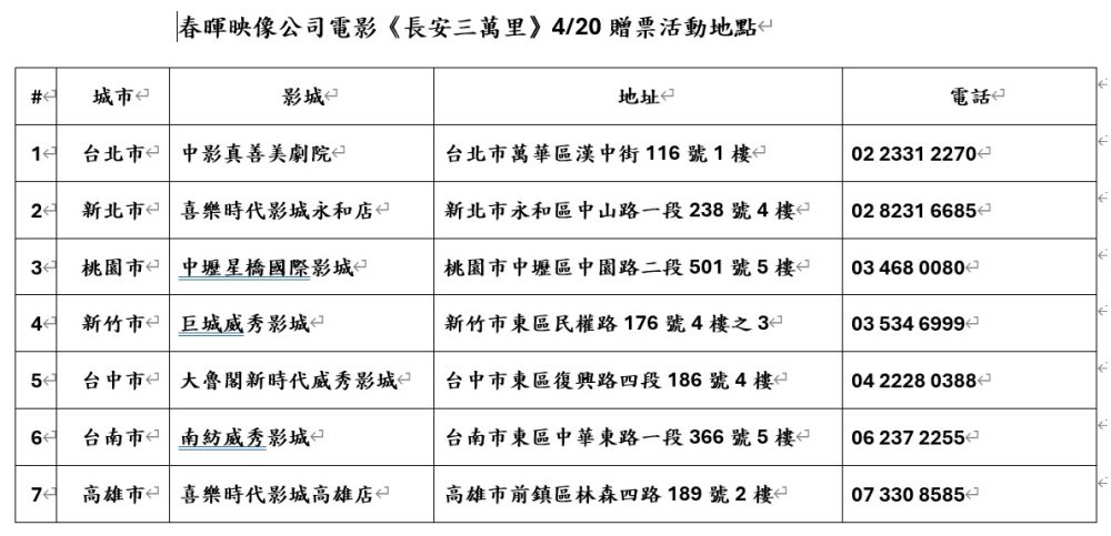 為了呼應『長安』–長久平安,這深刻美好的寓意,春暉特別邀請姓名中有『長安』的朋友免費觀賞《長安三萬里》喔! –只要您的姓名中有『長』或『安』或『長安』,4月20日(週日)當天下午1點至3點,出示身份證、健保卡或駕照即可兌換:有『長』或『安』的可換一張免費交換券,有『長安』兩個字的可換兩張,並贈電影海報。
