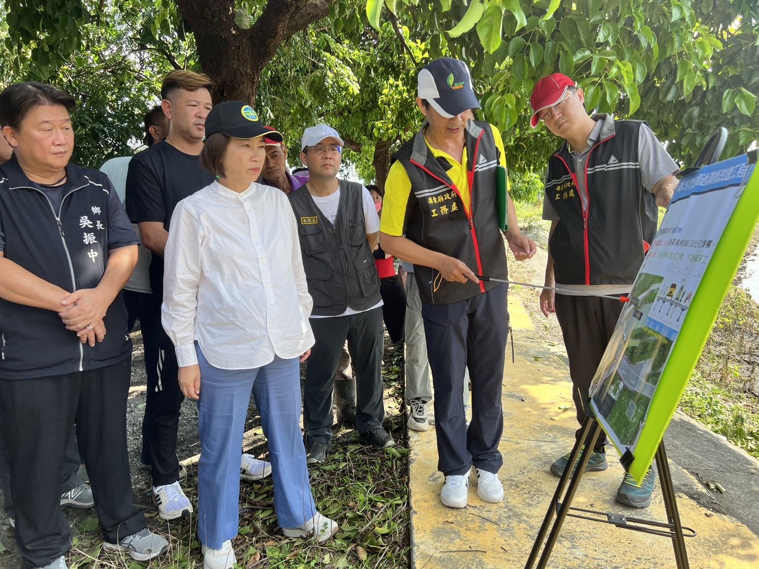 最後周縣長前往崁頂鄉了解魚池溝排水工程進度;魚池溝因下游地勢低窪排水不良,通水面積不足而導致淹水,縣府現正辦理第一期改善工程,凱米颱風滯洪池即已發揮八成以上功效,滯洪量達12萬多噸,目前工程進度超前,預計今年11月完工後滯洪量可再提升,縣府會繼續爭取二期、三期工程款,再往上游治理。