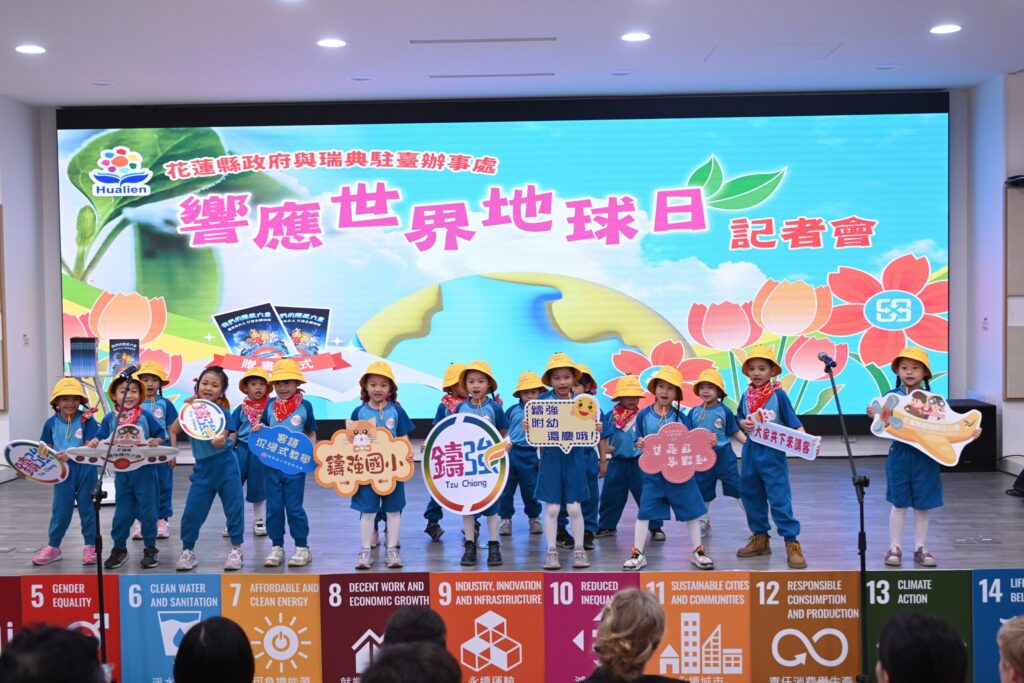 為響應「422世界地球日」,花蓮縣政府與瑞典駐臺辦事處今(16)日在花蓮縣環保局共同召開「響應世界地球日記者會」,在多位縣府局處首長、校長及學生見證下,瑞典駐臺代表任荷雅致贈花蓮縣政府所屬126所學校環境教育繪本「我們的隱藏力量:風光水火土打造永續地球」,由縣長徐榛蔚代表接受,號召社會各界共同支持環境永續,攜手保護地球環境。