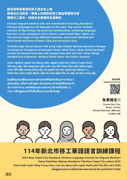 ▲114移工華語文課程海報。(圖/新北市勞工局 提供)