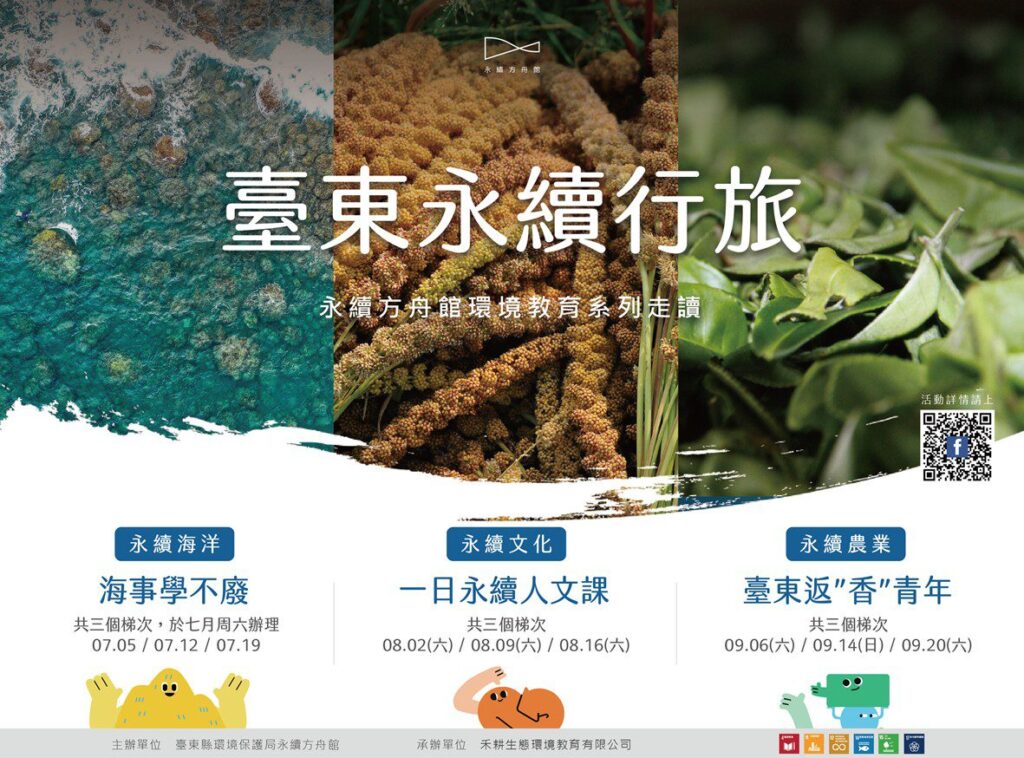 臺東縣環境保護局永續方舟館推出「臺東永續行旅」系列環境教育活動,強調環保從生活中出發,有效利用資源並回饋在地,猶如質量守恆定律ㄧ般,每一份投入都轉換成守護環境的動力與價值,即日起開放網路報名,每場次活動免費名額限額30名。