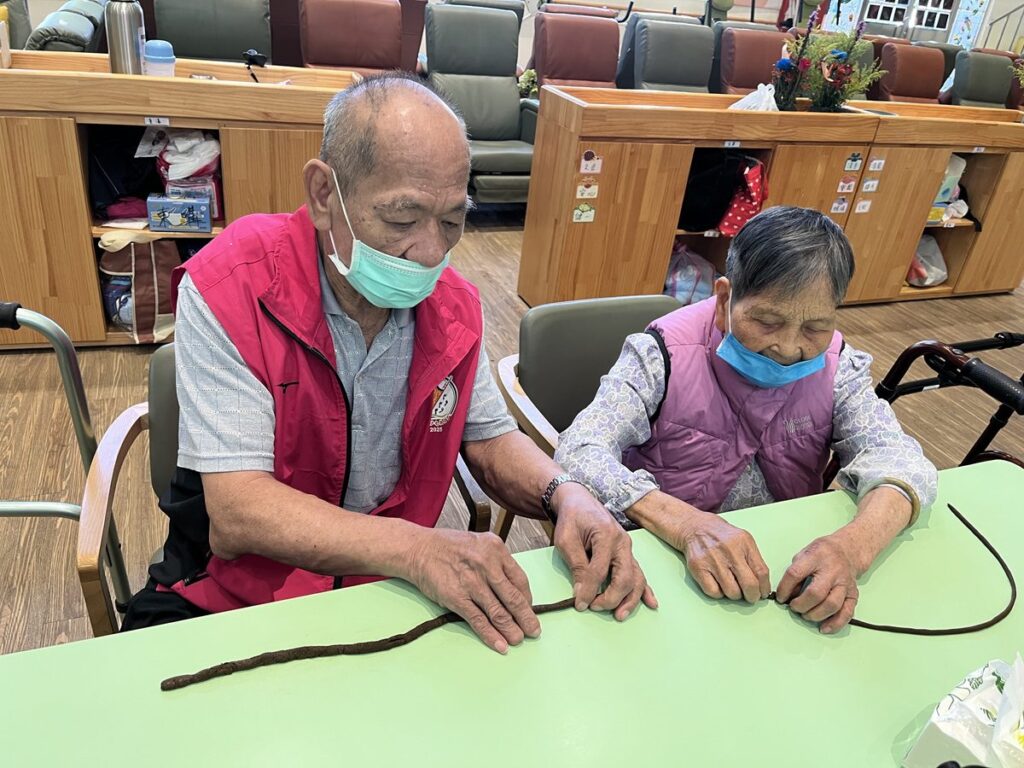 活動尾聲,大家一邊聞著清新的艾草香氣,一邊欣賞彼此的作品。阿福伯笑說:「這個比買的還香,我要拿回家放在臥房。」阿燕阿姨則說:「做得好開心,下次要做一打送孫子防蚊用。」阿東阿公更是不斷聞著香氣笑呵呵。