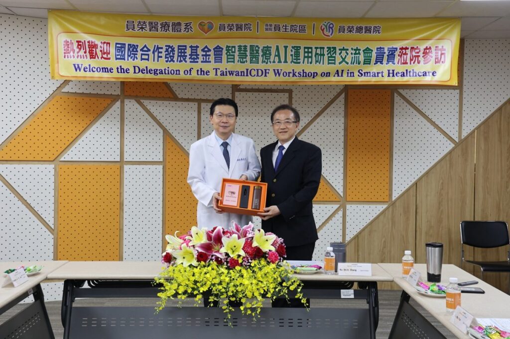 外交部國際合作發展基金會(國合會)今(11)日邀請歐亞非等全球21國專業人士來台參加「智慧醫療AI運用研習班」人員,參訪員榮醫療體系,深度瞭解AI人工智能運用在醫療領域的成功經驗。員榮醫療體系總院長張克士表示,非常高興接待這個深具意義的訪問團,特別是有來自21個國家的專業人士代表,這也讓他想起年輕時的一首歌叫"We are the world"。