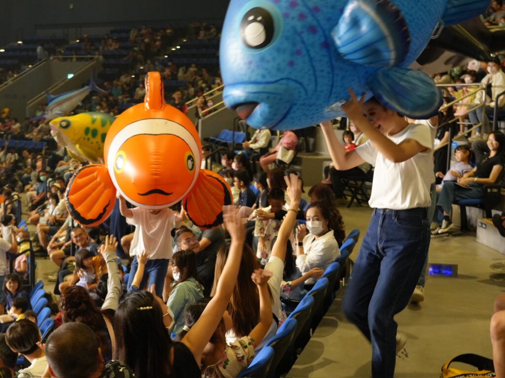 劇情不僅深入描繪西方經典故事中象徵堅韌與勇氣的海洋精神,更融合臺灣本土傳說—噶瑪蘭公主與龜將軍的動人故事。這些故事不僅帶來視覺上的震撼,博得滿堂喝采,更在情感與文化層面上,喚起觀眾對海洋的無限想像,讓人感受到那份對海洋文化、對大自然共存的深刻尊重與包容。演出結束後,團員操作各種大型海洋生物道具,一起與小朋友開心互動合影,也在觀眾心種撒下海洋藝文與保育的種子,為海洋藝文盛宴畫下完美句點。
