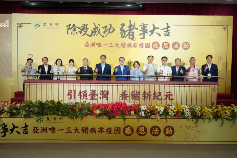農業部指出,傳統豬瘟自民國9年首次在臺灣發現,超過百年來對本土豬隻造成重大威脅。自民國47年政府啟動全面疫苗接種,逐步控制疫情,最終於民國94年出現最後病例。歷經近20年嚴密監控與堅持防疫,終在114年5月29日正式通過WOAH審查,獲得「非疫國」認證。卓院長特別感謝當年發明疫苗的林再春博士,帶動臺灣安全豬隻歷史時代,讓傳統豬瘟能夠在今天從田野中消失。