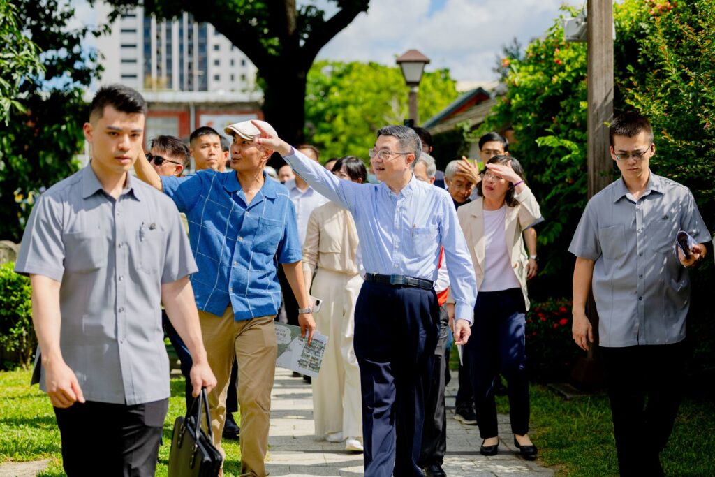 【記者何勁陞/屏東報導】 屏東勝利星村近年在中央與地方的共同合作下,逐步完成歷史建築修復,引進多元品牌進駐營運,打造成全台面積最大的遺構公園,帶動文化觀光效益。(7)日行政院長卓榮泰由縣長周春米陪同參觀勝利星村,肯定屏縣文資活化的成果,是再造歷史現場的成功典範。