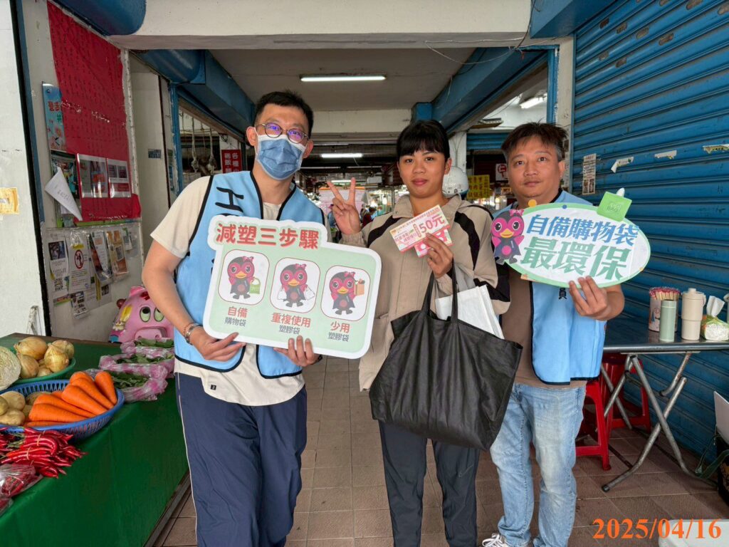 花蓮縣政府與消費市場聯手推動減塑行動,在吉安鄉仁里市場和花蓮市重慶市場辦理塑膠袋減量,已有多家攤商響應,成效良好。
