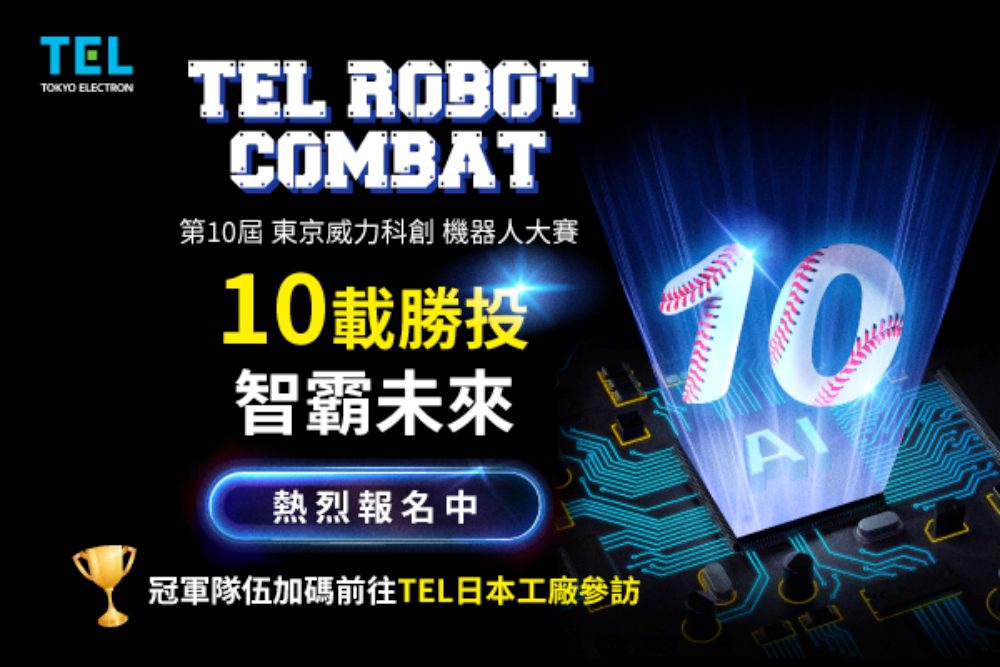 全球知名半導體製造設備商Tokyo Electron Taiwan (以下稱TEL台灣)舉辦「TEL Robot Combat / 東京威力科創機器人大賽」,持續投入創新科技人才培育,今年賽事邁向10周年里程碑,除了祭出超過百萬的總獎金及補助金外,更加碼邀請總冠軍隊伍赴TEL日本工廠參訪,歡迎各地優秀學子報名參賽,爭取高額獎金與赴日機會!