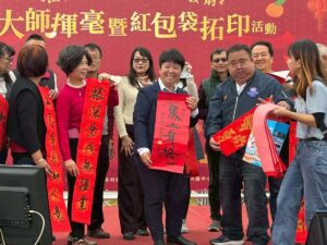 影音/田尾鄉馬上發財大師揮毫 現場烤乳豬與鄉親一起飽足迎新年